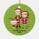 ¡Esto será un placer para siempre! Es una familia adorable vestida con trajes rojos de Santa y gorras. Tiene un fondo verde claro con puntos verdes más oscuros seguidos. Hay un papá, mamá y un niño. Consulte las demás combinaciones y ornamentos de la familia en nuestra tienda. ©JW Ilustraciones