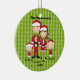 ¡Esto será un placer para siempre! Es una familia adorable vestida con trajes rojos de Santa y gorras. Tiene un fondo verde claro con puntos verdes más oscuros seguidos. Hay un papá, una mamá, una niña y un niño. Consulte las demás combinaciones y ornamentos de la familia en nuestra tienda. ©JW Ilustraciones