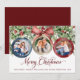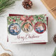 Esta clásica tarjeta de Navidad elegante cuenta con 3 fotos en adornos, decorada con una variedad de follaje y bayas y un lazo rojo, con la escritura tradicional “Feliz Navidad”. Si necesita más productos coincidentes u otras combinaciones de colores, por favor contácteme a través de Zazzle Chat.
