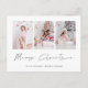 Moderna Familia Mínima 3 Fotos Feliz Navidad. Feliz Navidad está en un elegante guión. Reemplace fácilmente las imágenes de ejemplo con las suyas y personalícelas con sus nombres en la parte delantera y saludo en la parte posterior.