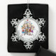 El ornamento en forma de copo de nieve de bonito tiene una figura de palos, mamá y papá con un niño y un chica, así como el perro de la familia frente al árbol de vacaciones. Puede cambiar fácilmente la familia a una foto propia, y también puede personalizarla con sus nombres u otro mensaje de texto.