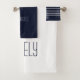 Aumente el encanto de su cuarto de baño con nuestra elegante toalla de baño monograma. La combinación de fuentes clásicas y un sencillo diseño azul marino exuda sofisticación. Personalízalo con tu nombre y crea un oasis moderno y personalizado en tu casa.