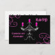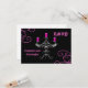 Estas son pequeñas invitaciones decoradas como tarjetas RSVP de boda. Presentan mi dibujo de un elegante portavelas góticas en negro y gris con alas de murciélago, remolinos, velas de perritos rosados calientes y joyas rosas en negro en la parte delantera.