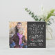 Divertidos y festivos Felices Festividades saludos con foto en tarjetas planas de moda. El estilo de pizarra con fondo negro, florecientes, deslizamientos y manantiales de pino y berry crean un marco invernal fantástico con elegante tipografía retro y letras caligráficas de escritura giratoria. Esta plantilla está configurada para recién casados y parejas recién comprometidas (se dispone de una versión familiar), perfecta para parejas próximas o recién casadas, pero se puede cambiar fácilmente el tema para una tarjeta de vacaciones salvo la fecha. Añade tu foto familiar de vacaciones favorita y personalizar el texto. Manera contemporánea de enviar felices saludos de vacaciones de invierno a todos tus amigos y seres queridos con un estilo vintage formal. Postal de correspondencia, invitaciones para fiestas de vacaciones y tarjetas de felicitación disponibles bajo petición. PCF13