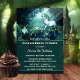 Una mágica invitación a la fiesta de cumpleaños con una escena de jardín encantada con un hada y unicornio. Hermoso para el cumpleaños de un niño con un unicornio, hada o tema de disfraces.
