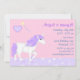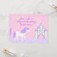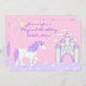 ~Este diseño de invitaciones de cumpleaños incluye un unicornio blanco y morado mágico. El establecimiento cuenta con un castillo y un fondo de fantasía rosa y violeta. Personalice con el nombre de su chica de cumpleaños y los detalles del fiesta.