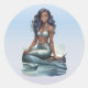 Pegatinas de una sirena con el pelo largo y fluido sentados elegantemente sobre una roca.