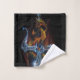 Un pequeño dragón rojo sentado sobre una espada con su cola envuelta en una espada.