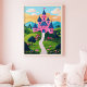 Escape a un mundo de sueños con este encantador poster de arte en castillo. Un maravilloso castillo rosa, enclavado entre verdes colinas y un vibrante cielo atardecer, crea una escena de pura magia y maravilla. ¡Este poster es perfecto para despertar la imaginación! Ideal para habitaciones para niños, salas de juegos o para los amantes de los cuentos de hadas.