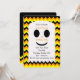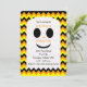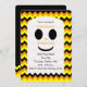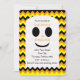 ¿Buscando una invitación para una fiesta de cumpleaños de Halloween para los niños? No hay más que fijarse en esta invitación, que también es contemporánea y bonita. La invitación de borde redondeado incluye rayas de chevron de negro, naranja y amarillo como fondo para un bonito fantasma en el que se guardan todos los detalles de la invitación. La parte trasera de la invitación tiene algunas filas de chevron también y la palabra "Boo!" en el centro sobre negro. Copyright henishouseofpaper