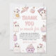 ¡Una tarjeta de agradecimiento de temática espeluznante para el primer cumpleaños de su bebé! Decorada con fantasmas pastel, calabazas, murciélagos y estrellas, esta tarjeta es perfecta para enviar sentidos gracias a la familia y los amigos. Personalice con el nombre de su hijo y haga que su día especial sea aún más memorable.