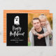 Muestra tu foto favorita de otoño o de Halloween con nuestras tarjetas de fotos Spooky Ghost Halloween. Las adorables tarjetas de Halloween presentan un fantasma lúdico y "Halloween feliz" en un tipo de letra manuscrita contra un fondo negro. Personalice su nombre, año y foto con un toque festivo. El reverso muestra un naranja de personalizable y un diseño de línea blanca, perfecto para añadir tu propio mensaje o mantenerse como está para un atrevido aspecto estacional.