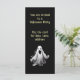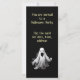 Una invitación para una fiesta de Halloween con un fantasma espeluznante e información de ambos lados.