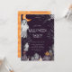 La invitación de Halloween incluye un fantasma, una casa embrujada, una escoba de brujas, una lápida y un caldero de brujas. Las palabras "fiesta de Halloween" están escritas en un tipo de letra divertido y festivo. Es la manera perfecta de invitar a tus amigos a una fiesta de Halloween espeluznante y dulce.