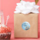 Bonito pegatina boda de temática playera redonda, con hermosos gráficos de concha marina y de estrellas de mar, en una playa de arena, con un fondo etéreo. El texto del guión negro está listo para personalizar. El toque final de las invitaciones a bodas de Fantasy Beach es encantador.