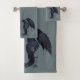 The early bird gets the worm. Raven Pair of Black Bird bathroom towels. Wild Nature - Corvid Raven. Nature and wild bird fantasy bath home decor art. The Crow and Raven are clever birds indeed, similar in smarts to the Ravens worldwide. You customize size, colors and styles of your crow pictures to suit your home decor taste. Bird images are sizable too. Many love this bird and consider them one of the smartest on the planet. Great gift idea or for a halloween party theme, or for those that appreciate the cleverness of ravens and wild corvid birds of the world.