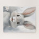 El rompecabezas de un conejo gris adorable y esponjoso con orejas grandes y una expresión adorable está rodeado de delicadas flores blancas. Los tonos pastel y suaves crean un ambiente suave y caprichoso.
