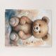Rompecabezas de un oso de peluche lindo y esponjoso rodeado de un follaje suave y acuarela que le da un toque suave y caprichoso. Los cálidos tonos tierra y las delicadas pinceladas realzan la entrañable expresión del oso.