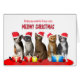 Una tarjeta de Navidades graciosos y lindos con 5 gatos sentados en fila usando sombreros de Santa. Las palabras que los Navidades Meowy están por encima de los gatos. ¡A cualquier amante de los gatos le encantará esto! Una tarjeta de Navidades para tu prometido.