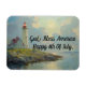 La imagen vintage de un faro en el borde del océano, aparece en este imán flexible para el 4 de julio. Con el mensaje, "Dios bendiga a Estados Unidos Feliz 4 de Julio". Un imán colorido hace de la decoración una maravilla para las vacaciones de julio o como un pequeño regalo.