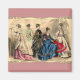 arte vintage con pintura de damas vestidas con trajes de pelota en un lugar de observación en el campo.