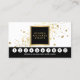 Una divertida pizca de falsos puntos metálicos de oro adornan este moderno y elegante diseño de tarjetas de fidelización blanca. El nombre o el nombre de su negocio están minimalmente diseñados en una falsa caja negra con marcos dorados en el centro. Actualice el descuento para su propia oferta única. Diseño © 1201AM Design Studio