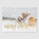 Tarjetas de Navidades magnéticos imprimidas por un personalizado asequible con plantillas sencillas para la personalización. Este moderno y elegante diseño presenta un guión falso de Relieve metalizado dorado en la tipografía de Feliz Navidad colocada en la foto completa de tu sangre. Personalízalo con tus fotos, tu apellido, el año u otro texto personalizado. Tenga en cuenta que el Relieve metalizado de oro falso es parte del diseño impreso - las tarjetas no tendrán Relieve metalizado metálico real. Utilice las herramientas de diseño para cambiar los tipos de letra y los colores del texto, añadir más fotos y crear una única de un diseño de tarjeta fotográfica de vacaciones.