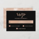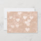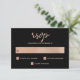 Estas glamorosas tarjetas RSVP de boda tienen un fondo negro oscuro y un texto de moda de color rosa dorado. La elegante tipografía añade un toque extra elegante. La parte posterior de la tarjeta presenta un patrón de corazones de bokeh rosado a juego.