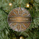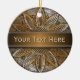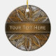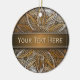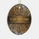 Girasol de madera © Sunny Mars Designs. Guay, elegante, moderno, moderno y único personalizado imprimió un adorno de cerámica redonda con una hermosa foto falsa impresa de un diseño de girasol texturado de madera.