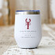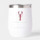 Estos tumblers de moda costera hacen grandes regalos de novias o favores matrimoniales para su boda de Nueva Inglaterra o Maine. El diseño minimalista limpio incluye los nombres, la fecha de boda y la ubicación en el grabado clásico de serif negro. Un ilustracion de langosta de color rojo completa el diseño.