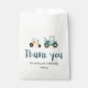 Pequeño y lindo patrón de tractores bolsa de favores! Este diseño es absolutamente adorable. Cuenta con unos tractores lindos y sin fisuras en un fondo azul claro.
