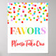 Cartel de señal de mesa de favores para baby shower, fiesta de cumpleaños o baby sprinkle en patrón de confeti de arcoíris.