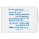 Palabras sabias del presidente Franklin Delano Roosevelt, demócrata, "Ningún negocio que dependa para su existencia de pagar a sus trabajadores salarios inferiores a los de vida tiene derecho a continuar en este país. Con los salarios vivos me refiero más que a un nivel de subsistencia simple — me refiero a los salarios de una vida decente". Perfecto para ti, persona demócrata, progresista, liberal o antigubernamental favorita.