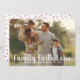 Celebra la temporada y lo que es importante para ti y tu familia. Esta hermosa tarjeta muestra tu foto con una tipografía con letras a mano que dice "Amor por la Fe Familiar" - cambia fácilmente a tus palabras personalizados. En la parte trasera hay un patrón festivo de puntos de polka. Sencillo y clásico pero significativo y sincero - la tarjeta de vacaciones perfecta para difundir alegría de las vacaciones.