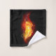 Una brillante pluma de pavo real hecha de fuego y llama sobre fondo negro.
