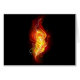 Una brillante pluma de pavo real hecha de fuego y llama sobre fondo negro.