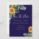 Hermosas hojas verdes de eucalipto, follaje y girasoles aparecen en este elemento de boda clásico elegante moderno, perfecto para una isla tropical, playa, boda de destino. Es parte de una colección más grande que incluye invitaciones de boda económicas, confirmaciones de asistencia, fechas de guardado, pegatinas y etiquetas de favor, sobres, regalos para la fiesta de boda y la fiesta de la novia, regalos para recién casados para combinar y más. Vea la colección adjunta para verlos todos.