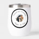 Personalizable boda pareja vino tumbler con foto y dos líneas de texto personalizado.
