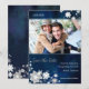 Flores elegantes de la nieve, copos de nieve y remolinos florales en blanco + fondo rústico de los azules marinos ilustrado en reserva de encargo de la boda de la foto las invitaciones de la fecha. Invitaciones de boda festivas y caprichosas del invierno que usted puede modificar para requisitos particulares completamente con su propia fraseología y imagen. ¡Grande para su INVIERNO ATRACTIVO próximo QUE CASA EL AÑIL del | y la PALETA DE COLORES BLANCA QUE CASAN LA BODA ELEGANTE del INVIERNO del | BOHO o la BODA RÚSTICA del PAÍS DE LAS MARAVILLAS del INVIERNO! ((Usted puede encontrar el esencial y los favores a juego en esta tienda, cielo nupcial del boda. Entre en contacto con ujean4791@gmail.com para el trabajo de encargo y/o los efectos de escritorio de coordinación del boda.))