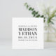 La tipografía moderna permite guardar la tarjeta de fecha en español con los detalles de tu boda en grandes letras grises en negrita sobre un fondo blanco. La parte trasera tiene tu foto cuadrada de sangría completa favorita. Un diseño sencillo y contemporáneo, ideal para la pareja minimalista. CONSEJO DE DISEÑO: Para que las líneas tengan la misma longitud, haga clic en el botón personalizar y aumente/reduzca el tamaño de cada línea. Si necesitas ayuda con la plantilla, te arreglaré las fuentes por gusto; simplemente contacta conmigo haciendo clic en el botón "contacto".