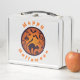 Insignia feliz de círculo de Halloween con gato negro de jack-o'-lantern y tipografía de murciélagos