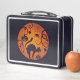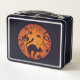 Insignia feliz de círculo de Halloween con gato negro de jack-o'-lantern y tipografía de murciélagos