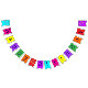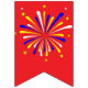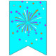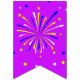 Una colorida bandera que se aferra a un cumpleaños feliz especial. Tres de las banderas tienen fuegos artificiales coloridos.