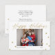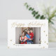 Una moderna y elegante caligrafía de oro de Felices Fiestas con una foto de sus recuerdos Navidades. Envíe esta alegre tarjeta postal de vacaciones a su familia y amigos para difundir la alegría con puntos de polka dorados de confetti para añadir diversión