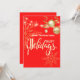 Felices fiestas Navidad adornos de oro, copos de nieve de oro tarjeta de anuncio personalizada.