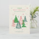 Esta carta moderna presenta un ilustracion sencillo de varios árboles de Navidad con colores típicos de temporada. El fondo de la textura aporta un suave toque rústico. Esta tarjeta no fotográfica es ideal para enviar saludos de Navidad o deseos de vacaciones felices a la familia y amigos. Es una excelente tarjeta corporativa para enviar a asociados y clientes.