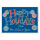 Una divertida tarjeta de Happy Holidays, basada en texto, 'From Our Home to Your', con ornamentos y letras, llena de chevrons rojos, azules y verdes y puntos de polka, se dibuja en blanco sobre un fondo azul brillante. También hay una tarjeta delantera personalizado con este diseño en funda que no puede encontrar una tarjeta para el destinatario específico que está buscando.