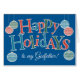 Una divertida tarjeta de vacaciones Happy Holidays basada en texto para un padrino, con ornamentos y letras, llena de chevrones rojos, azules y verdes y puntos de polka, se dibuja en blanco sobre un fondo azul brillante. También hay una tarjeta delantera personalizado con este diseño en funda que no puede encontrar una tarjeta para el destinatario específico que está buscando.