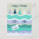 Esta tarjeta de vacaciones para Profesor fue diseñada en un esquema de color alternativo. Cuenta con elementos de color azul marino, aqua y lavanda, incluyendo papel rasgado, árboles de abeto y copos de nieve. Este diseño fue inspirado por la manualidad del scrapbooking. Para agregar texto al lado opuesto (asegúrese de que ese lado esté mostrando), haga clic en "Personalizar" y luego en "Agregar texto". Elija una fuente ('f' en un círculo), tamaño de fuente y color.