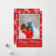 Este diseño de tarjetas de Navidades de vacaciones presenta su superposición de fotos personalizado con decoraciones navideñas blancas en un fondo rojo y el texto "Felices Fiestas" con su apellido personalizado o texto debajo en un escritura blanca moderna. #navidades #feriados #temporada #festive #feliz #foto #fotografía #familia #mail #saludos #tarjetas #papelería #personalizada #nombre personalizado #diy #addyourown #decoraciones #baubles #rojo #blanco #casa #oficina #colegio #escuela #moda #estilo de moda #diseño elegante #diseñador #trendy #trending #trending